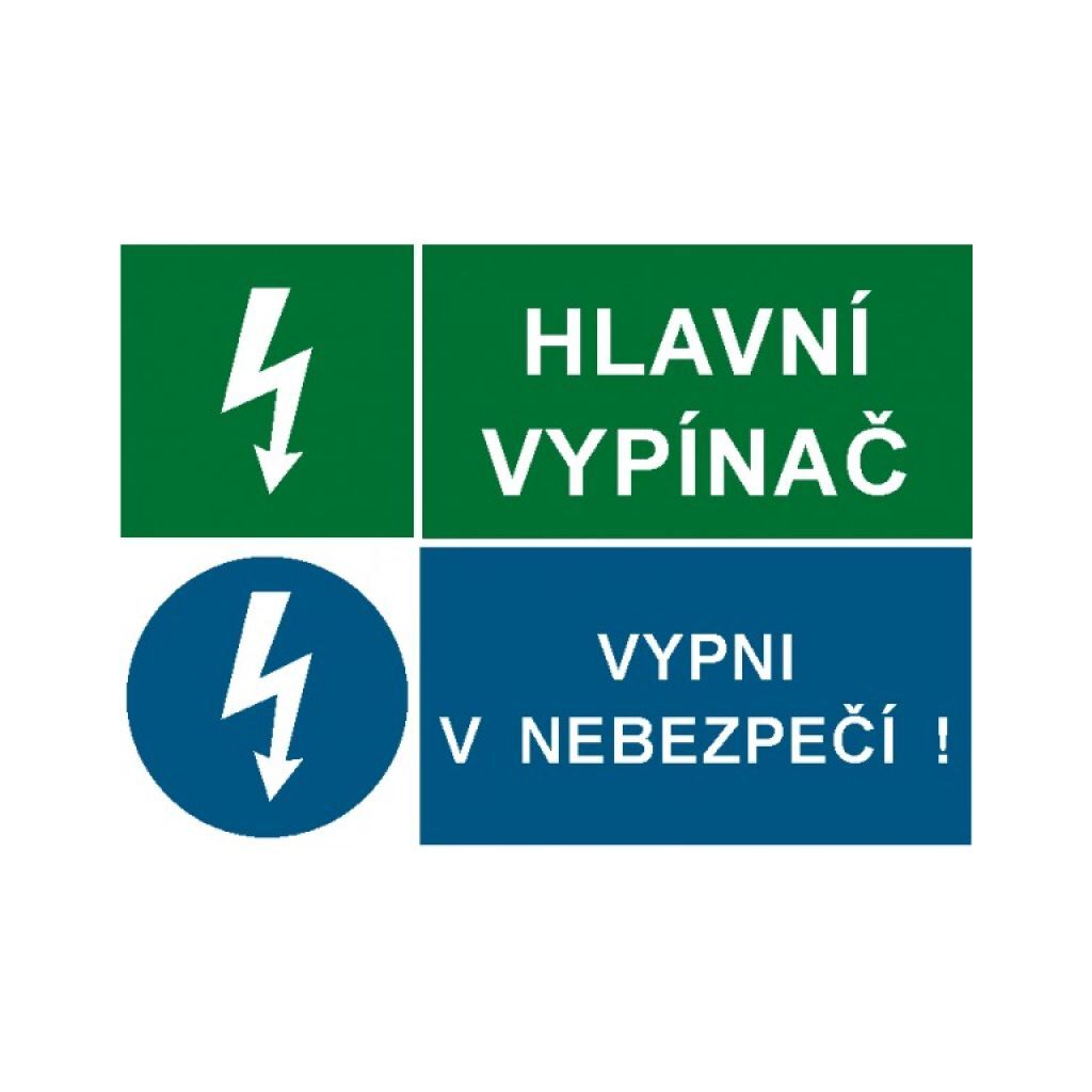 Bezpečnostní tabulka Hlavní vypínač, Vypni v nebezpečí. Značka 12671.Materiál: plast