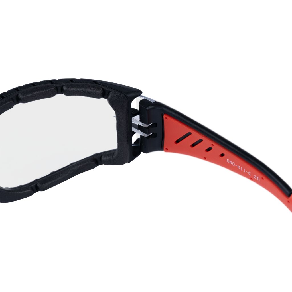 Brýle s polykarbonátový zorníkem a rámečkem. Polykarbonátové postranice v kombinaci s nylonem. Ochrana proti částicím s vysokou rychlostí nárazu s malou energií je zajištěna vysoce odolným polykarbonátem. Vrstva proti poškrábání, vrstva proti zamlžování. Velmi lehké. Vynikající přizpůsobivost a komfort při nošení. Vysoká úroveň pohodlí při zajištění spolehlivé ochrany zraku. Široké zorné pole. Vnitřní oddělitelný těsnící rámeček z měkkého materiálu EVA.