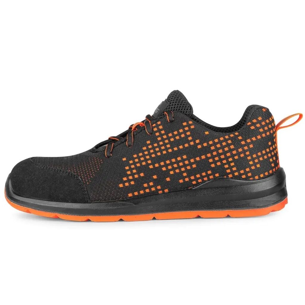 Textilní polobotka s reflexními doplňky. Materiál: svršek z odolného 1,8 - 2,0 mm polyesteru pratelného do 30 °C, přední část zesílena mikrovláknem, 3-vrstvá prodyšná textilní podšívka, PU-PU, podešev: PU-PU, protiskluzová, olejivzdorná, antistatická.