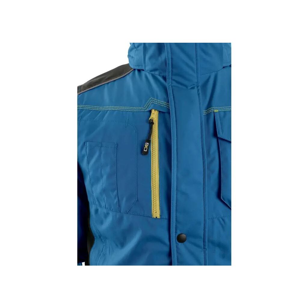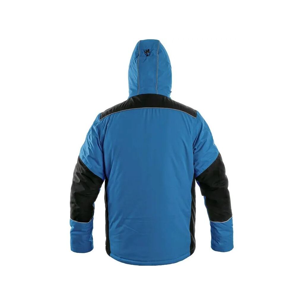 Pánská zateplená bunda, odolná proti vodě a větru, kryté zapínání na zip, odepínací kapuce, vnitřní manžety v rukávech, plastové poutko pod náprsní kapsou, stahování v dolním okraji, lepené švy, TPU membrána, reflexní doplňky. Náprsní kapsy na zip nebo druky, 2 boční kapsy na zip, 3 vnitřní kapsy. Velikost:: S - 4XL Barva: středně modrá Materiálové složení Svrchní materiál: 100 % polyester, Podšívka: 100 % polyester, Zateplení: 100 % polyester Gramáž 160 gsm Normy EN ISO 13688, EN 14058