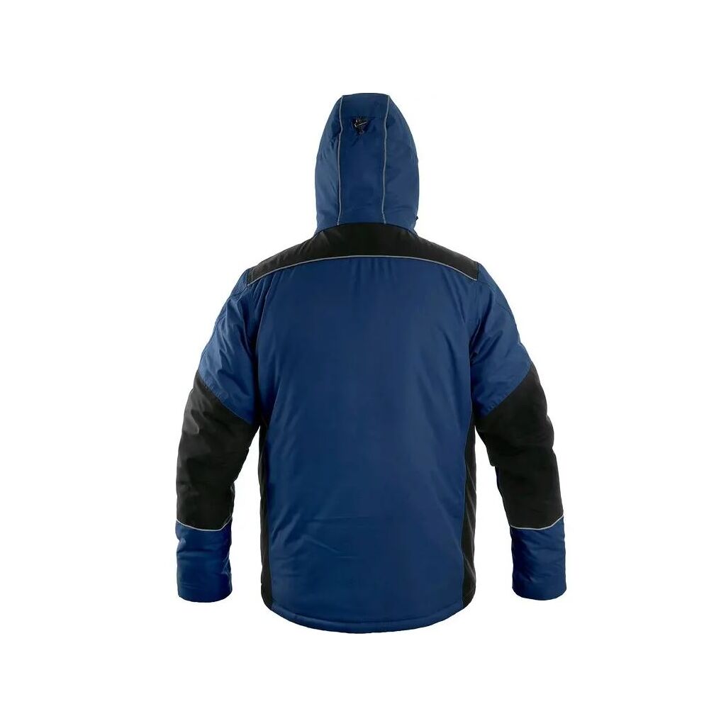 Pánská zateplená bunda, odolná proti vodě a větru, kryté zapínání na zip, odepínací kapuce, vnitřní manžety v rukávech, plastové poutko pod náprsní kapsou, stahování v dolním okraji, lepené švy, TPU membrána, reflexní doplňky. Náprsní kapsy na zip nebo druky, 2 boční kapsy na zip, 3 vnitřní kapsy. Velikost:: S - 4XL Barva: tmavě modrá Materiálové složení Svrchní materiál: 100 % polyester, Podšívka: 100 % polyester, Zateplení: 100 % polyester Gramáž 160 gsm Normy EN ISO 13688, EN 14058