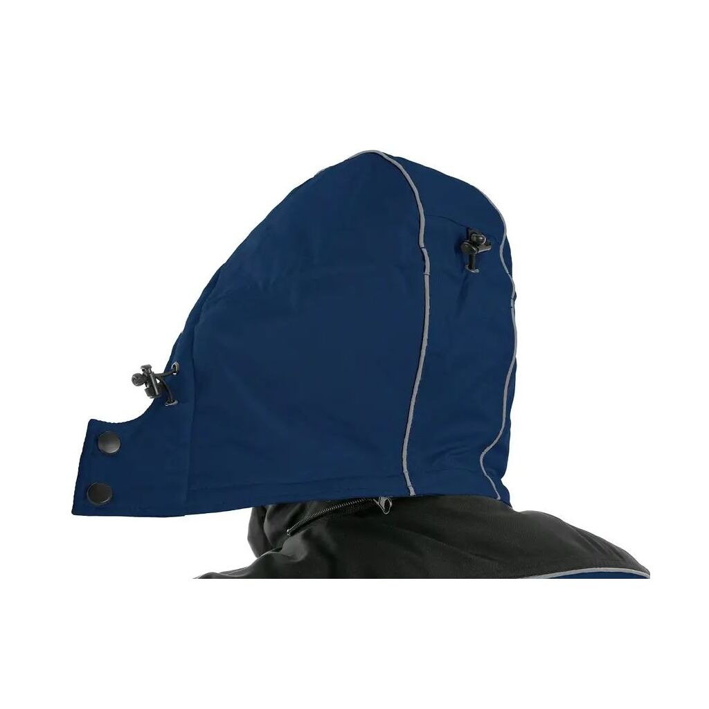 Pánská zateplená bunda, odolná proti vodě a větru, kryté zapínání na zip, odepínací kapuce, vnitřní manžety v rukávech, plastové poutko pod náprsní kapsou, stahování v dolním okraji, lepené švy, TPU membrána, reflexní doplňky. Náprsní kapsy na zip nebo druky, 2 boční kapsy na zip, 3 vnitřní kapsy. Velikost:: S - 4XL Barva: tmavě modrá Materiálové složení Svrchní materiál: 100 % polyester, Podšívka: 100 % polyester, Zateplení: 100 % polyester Gramáž 160 gsm Normy EN ISO 13688, EN 14058