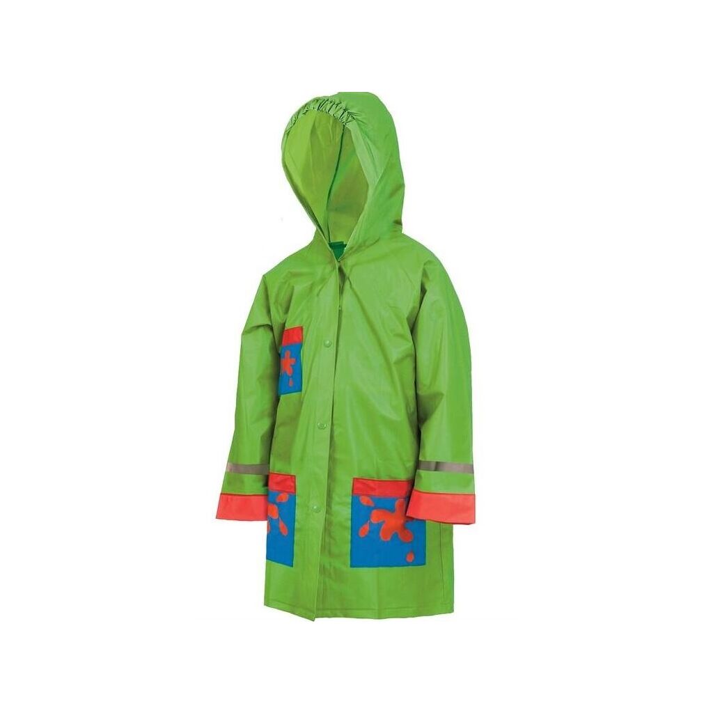 Dětská pláštěnka, nepromoková, s kapucí, zapínání na druky, zatavené švy. Reflexní doplňky.Velikost: 90 - 120Barva: zelenáMateriál: 100% PVC