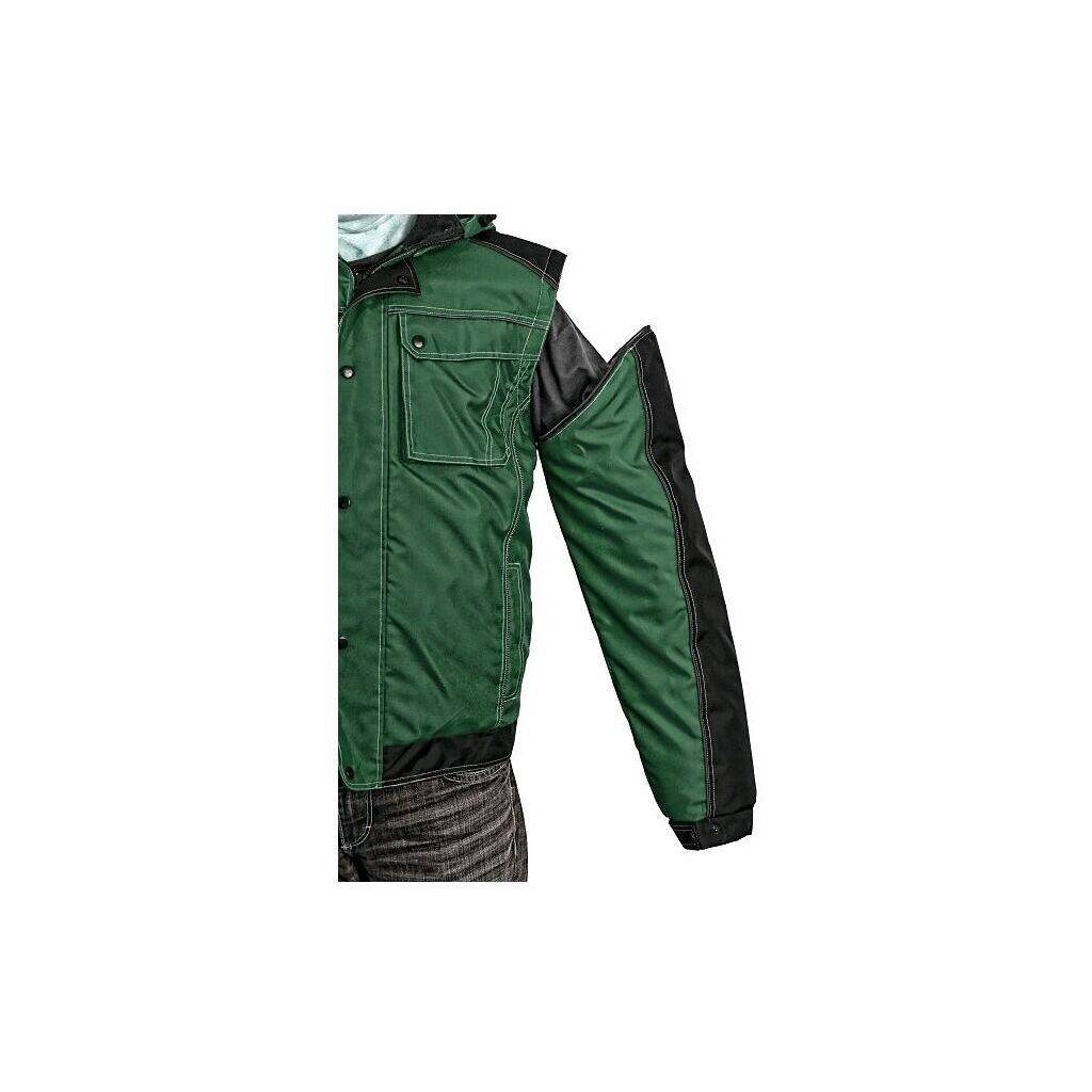 Pánská zateplená bunda 2 v 1, zapínaní na zip krytý légou, odepínací kapuce, fleecový límec, odepínací rukávy, regulovatelné manžety na rukávech, plastové poutko pod pravou náprsní kapsou, stahování v dolním okraji, lepené švy, reflexní doplňky. Kapsy: 3 náprsní kapsy na zip, 2 spodní kapsy na zip, 1 vnitřní kapsa. Voděodolnost 3 000mm, paropropustnost 3 000g/m2/24 hod. Materiálové složení: 100% polyester, podšívka 100% polyester, výplň 100% polyester Barva: zelená-černá Velikost: S - 4XL EN ISO 13688 EN 14058