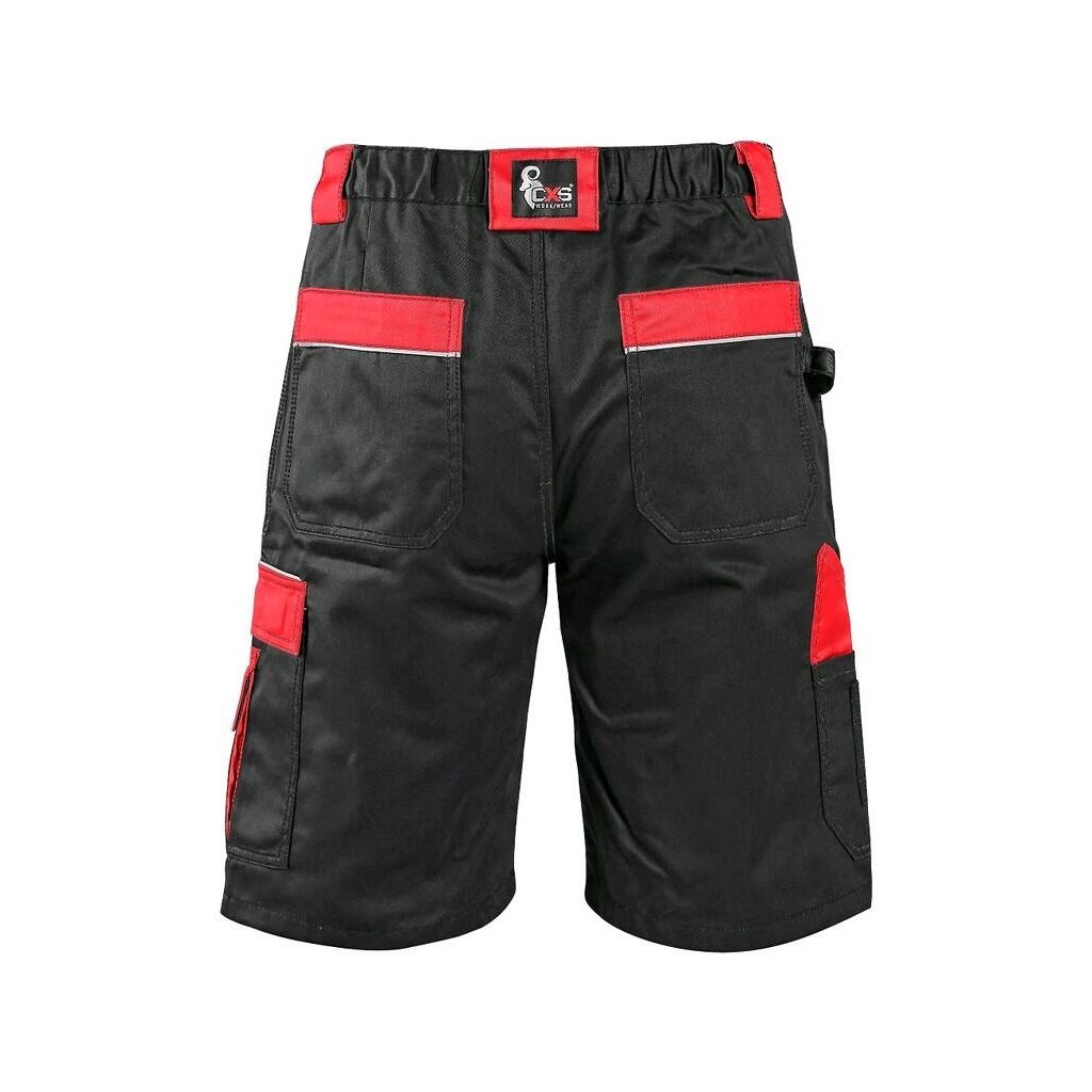 Pánské montérkové kraťasy, pas s poutky na opasek, vzadu do gumy, přední kapsy s poutky na nářadí, multifunkční kapsy na obou stranách, dvě zadní kapsy, jedna na suchý zip, reflexní doplňky.