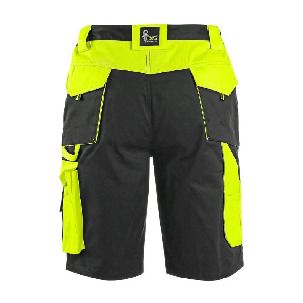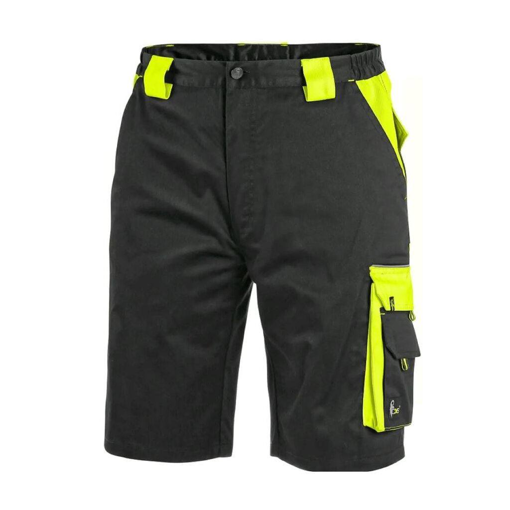 Pánské montérkové kraťasy, pas s poutky na opasek a gumou v bocích, přední klínové kapsy, multifunkční kapsy na obou stranách, dvě zadní kapsy s klopami, reflexní doplňky.