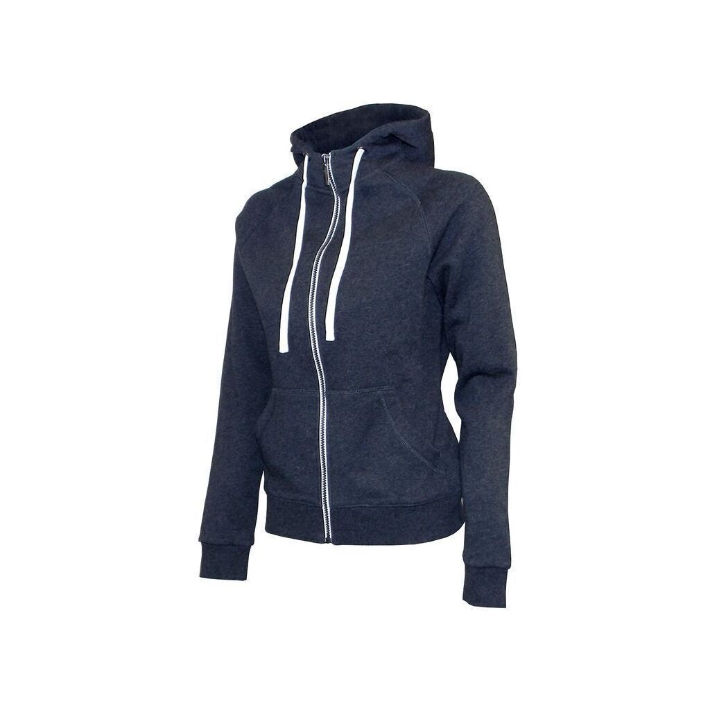 Dámská mikina na zip s kapucí. Náplety s elastanem, dvojité prošití, 2 kapsy, zpevňující půlměsíc za krkem. Dvouvrstvá kapuce se stahovací plochou tkaničkou, kontrastní kostěný zip kovového vzhledu