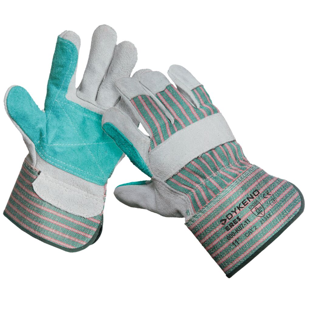 Cena za 50 párů. Z kvalitní měkké hovězí štípenky s tuhou manžetou. Zesílená vrstva kůže v dlani, bavlněná tkanina na hřbetu, kvalitní podšívka. Vysoká odolnost a dlouhá životnost. Rukavice mají zesílenou dlaň, palec a ukazovák, podšívka na dlani a prstech, vyztužená látková pogumovaná manžeta.