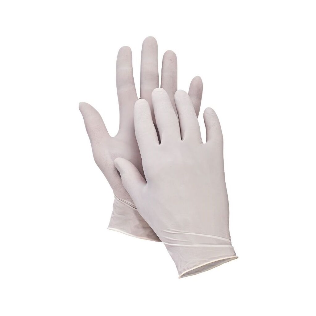 Jednorázové rukavice latexové, pudrované pro krátkodobý styk s potravinami. Atestace pro přímý styk s tukovými potravinami.