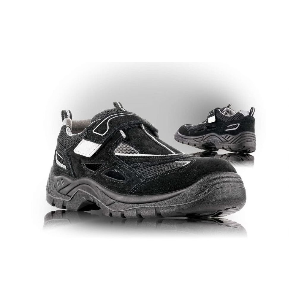 Obuv pracovní sandály je celokožený s kombinací s textilem. Reflexní doplňky pro větší bezpečnost uživatele a správně zvolené odvětrání sandále zaručuje komfort při nošení. Zapínání na suchý zip pomocí kvalitní pásky. Mezi další bezpečností prvky patří hliníková tužinka ve špičce sandálu. Podrážka je protiskluzová a nepíšící, což oceníte především v halách, kde je možné znečištění podlahy.