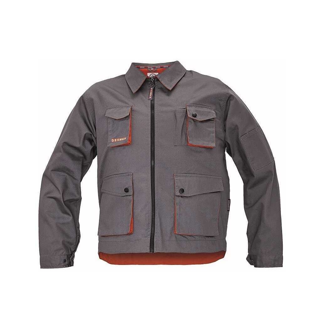 Montérková bunda pohodlného střihu a funkčními detaily. Polohovatelné manžety na plastové druky. Oranžové doplňky, 4 vnější a 4 vnitřní kapsy jsou nedílnou součástí.