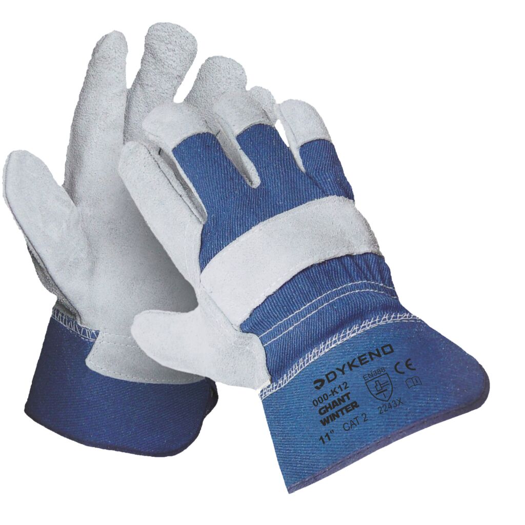 Cena za 50 párů. Zimní pracovní rukavice ve vysoké kvalitě, nedělené silné hovězí štípenky. Dlaň z kvalitní silné štípané hovězinové usně, hřbet z bavlněné šedé tkaniny se silnou pogumovanou manžetou. Podšívka ve dlani, zesílená pogumovaná manžeta. Zateplené akrylovou podšívkou v celé rukavici. Proti mechanickým rizikům, CAT 2, středně těžké a těžké prostředí.