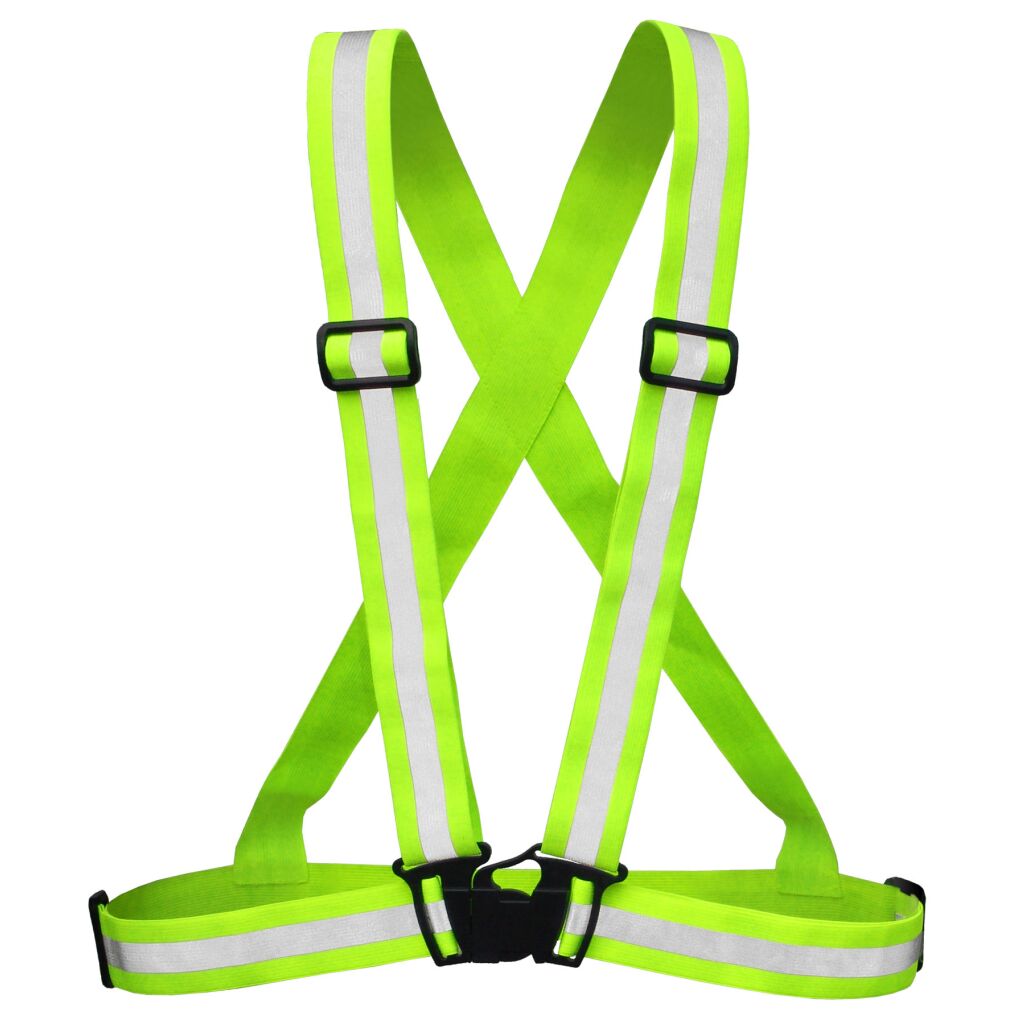 Elastický kříž, reflexní pásky v šíři 4 cm, nastavtelná šířka i délka pásu, šíře reflexního pruhu 1,5 cm. Plastové stavěcí spony. Reflexní kříž Strafox s vysokou viditelností za světla, za tmy, při světle reflektorů. Doplněk oděvu.