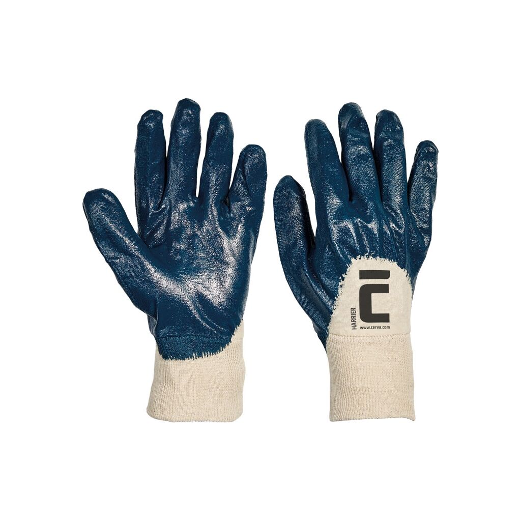 Pracovní rukavice šité z bavlněného úpletu s pružným nápletem na zápěstí, polomáčené v modrém nitrilovém kaučuku. Odolnost proti olejům, ropným produktům. Jsou vhodné pro manipulaci s materiály za sucha i za vlhka, pro použití ve všech oborech průmyslu.
