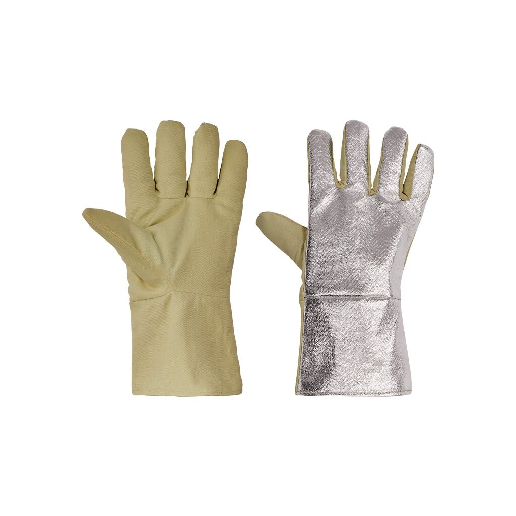 Do 250 °C a krátkodobě maximálně až do 500 °C. Rukavice Scaup pohliníkované jsou třívrstvé, pětiprsté tepelně odolné rukavice žluté barvy s pohliníkovaným hřbetem. Jsou vyrobené z materiálu Aramid a to tak, aby svému uživateli poskytly dostatečnou ochranu před tepelnými a mechanickými riziky při dostatečném pohodlí a pohyblivosti do 250 °C a krátkodobě maximálně až do 500 °C. Veškeré švy na svrchní straně jsou šité kevlarovými nitěmi. Svrchní Aramidová vrstva chrání proti mechanickým rizikům a rozhodujícím způsobem proti tepelným rizikům, proti oděru a proti dalšímu trhání. Dlaňová část chrání před kontaktním a konvenčním teplem. Vnitřní vrstva je vyrobena z čisté vlněné textilie a rovněž chrání proti tepelným rizikům. Vzhledem k vysokým stupňům provedení ochrany před vysokými teplotami je splněn povinný požadavek na konstrukci rukavic tak, aby mohly být rukavice v případě náhlé potřeby snadno odstraněny (odloženy). Mají dobrou úchopovou schopnost.